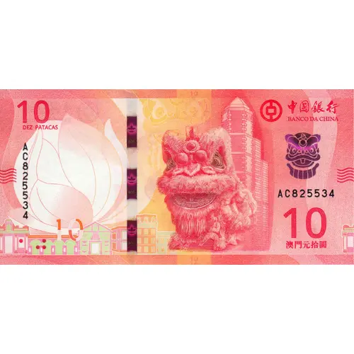 | Obverse lettering | 10 DEZ PATACAS 中國銀行 BANCO DA CHINA 10 澳門元拾圓 (Translation: Ten Patacas Bank of China Ten Macanese Patacas) |