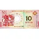 大西洋銀行 10 DEZ PATACAS MACAU 10 澳門幣拾圓 (Translation: Great West Ocean Bank Ten Patacas Macau Ten Macanese Patacas) |