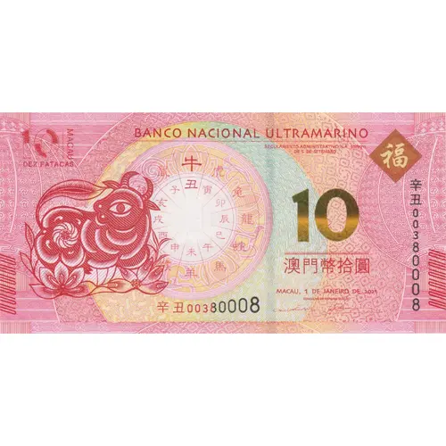 大西洋銀行 10 DEZ PATACAS MACAU 10 澳門幣拾圓 |
