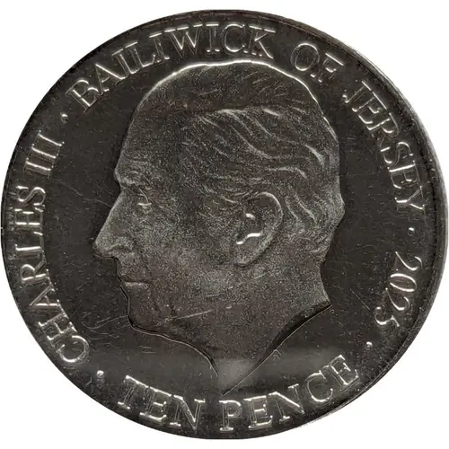 | Obverse lettering | CHARLES III · BAILWICK OF JERSEY · 2025 · GD TEN PENCE |