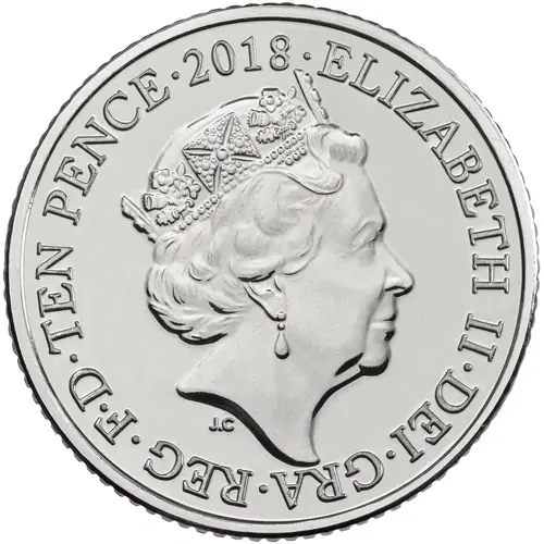 | Obverse lettering | ELIZABETH II∙DEI∙GRA∙REG∙F∙D∙TEN PENCE∙2018∙ J.C (Translation: Elizabeth the Second by the Grace of God Queen Defender of the Faith) |