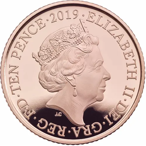 | Obverse lettering | ELIZABETH II∙DEI∙GRA∙REG∙F∙D∙TEN PENCE∙2019∙ J.C (Translation: Elizabeth the Second by the Grace of God Queen Defender of the Faith) |