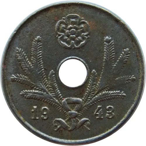 | Mô tả mặt sau | Center hole divides denomination, two rosettes flanking. |