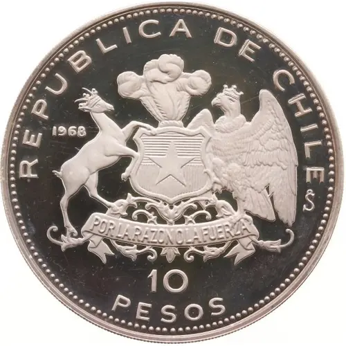 | Obverse lettering | REPUBLICA DE CHILE 1968 So 10 PESOS |