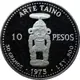 | Reverse lettering | ARTE TAINO 10 PESOS 30 GRAMOS 1975 LEY 900 (Translation: Taino Art 30 Grams .900 Purity) |