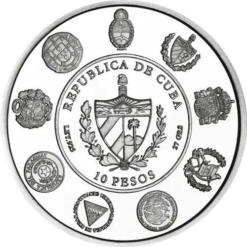 | Obverse lettering | REPUBLICA DE CUBA LEY.925 10 PESOS 27 GRS (Translation: Republic of Cuba 0.925 Purity 10 Pesos 27 Grams) |
