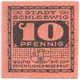 | Obverse lettering | Stadt Schleswig 10 Pfennig Gültig bis zum öffentlichen widerruf |