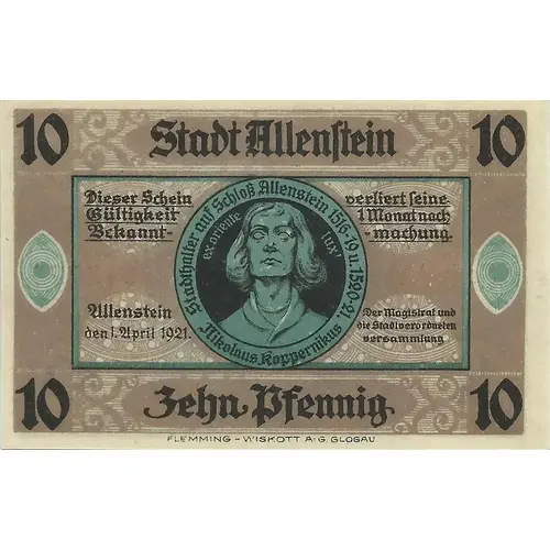 | Printer | Carl Flemming & T. C. Wiskott A.G., Glogau, Poland |
