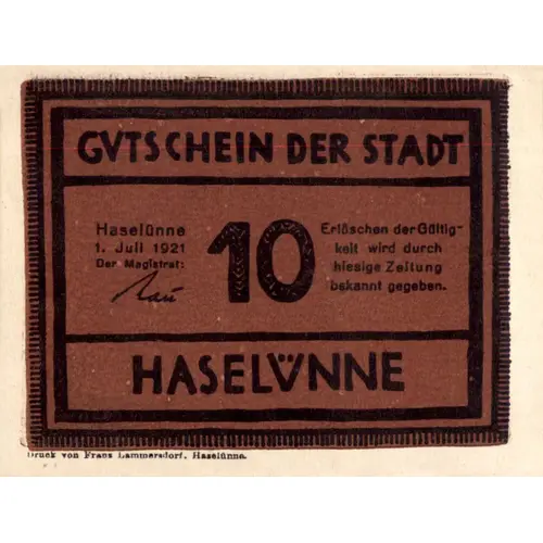| Obverse lettering | Gutschein der Stadt Haselünne |