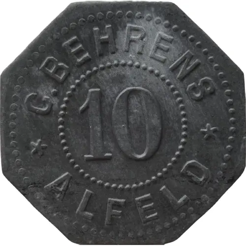| Obverse lettering | C. BEHRENS 10 ★ ALFELD ★ |
