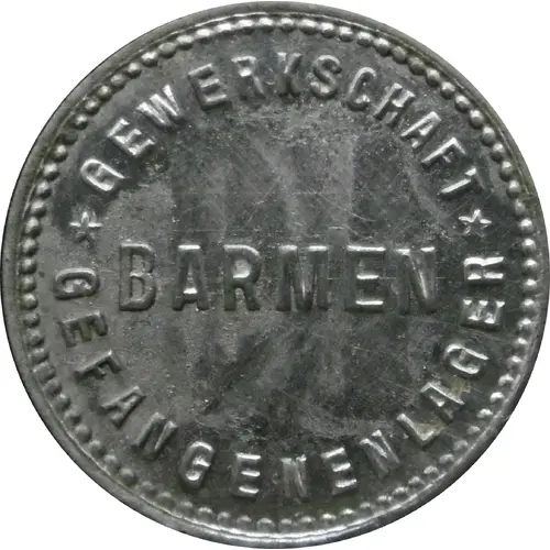 | Obverse lettering | GEWERKSCHAFT ★ BARMEN ★ GEFANGENENLAGER |