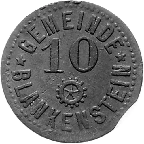 | Obverse lettering | GEMEINDE 10 ★ BLANKENSTEIN ★ |