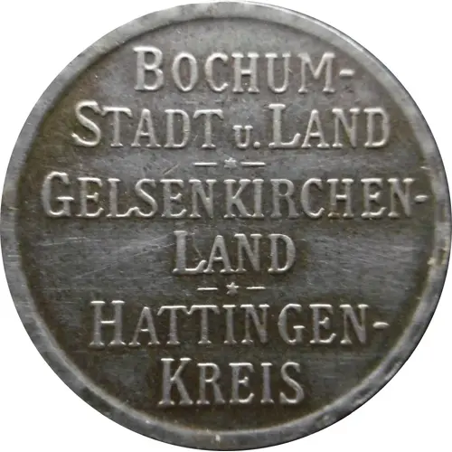 | نوشتههای روی سکه | BOCHUM- STADT u. LAND -*- GELSENKIRCHEN- LAND -*- HATTINGEN- KREIS |