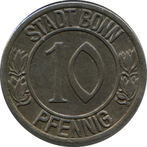| Obverse lettering | STADT BONN 10 PFENNIG |