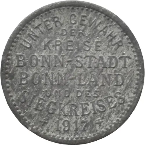 Надписи аверса UNTER GEWÄHR DER KREISE BONN-STADT BONN-LAND UND DES SIEGKREISES 1917