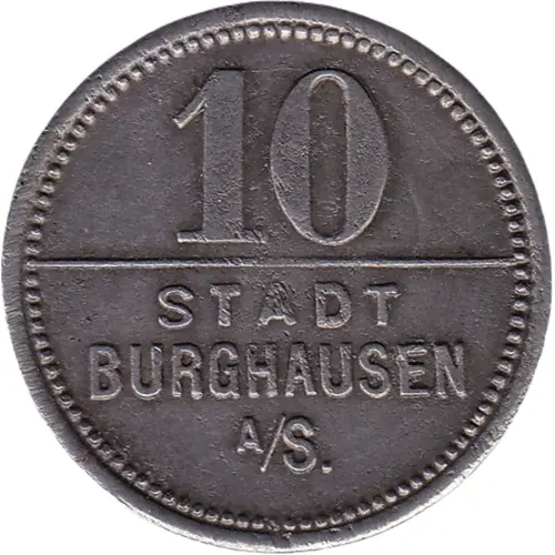 | Obverse lettering | 10 STADT BURGHAUSEN A/S. |