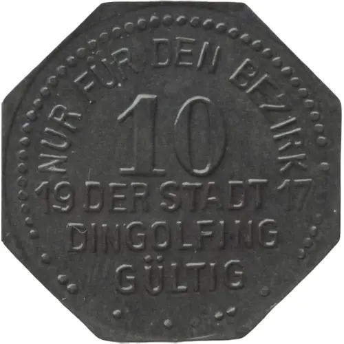 Obverse lettering NUR FÜR DEN BEZIRK 10 19 DER STADT 17 DINGOLFING GÜLTIG