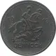 Descrizione del rovescio Pearl rim surrounding Knight on horseback slaying a dragon dividing date