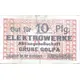 Gut für 10 Pfg. ELEKTROWERKE Aktiengesellschaft GRUBE GOLPA Einzulösen bei der Werkasse. (Translation: Valid for 10 pfennigs. ELECTRIC WORKS Public Limited Company GOLPA MINE Redeemable at the company's cash office. [Serial Sample]) |