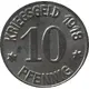 | Reverse lettering | KRIEGSGELD 1918 10 ✶ PFENNIG ✶ |
