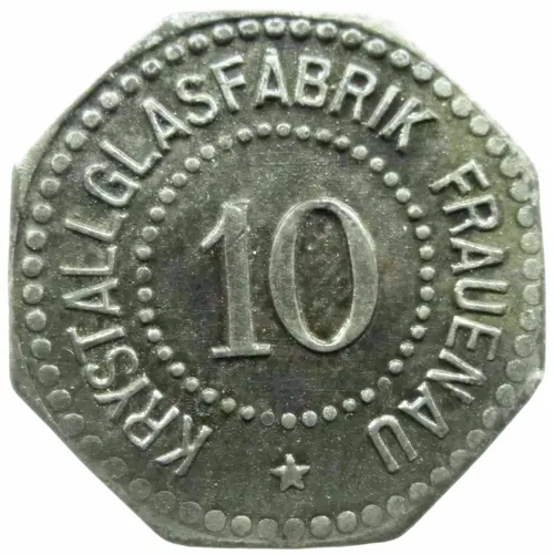 | Obverse lettering | KRYSTALLGLASFABRIK FRAUENAU 10 ★ |