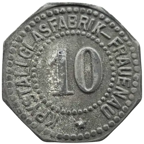 | Obverse lettering | KRYSTALLGLASFABRIK-FRAUENAU 10 ★ |