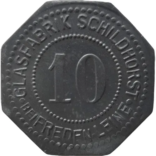 | Obverse lettering | GLASFABRIK SCHILDHORST 10 ● bei FREDEN-LEINE ● |