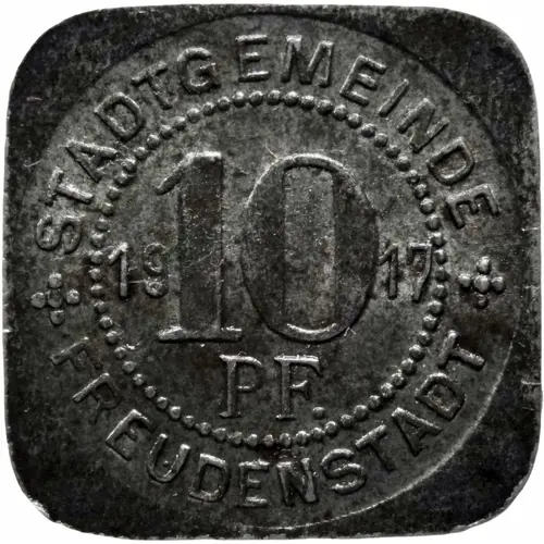| Obverse lettering | STADTGEMEINDE 19 10 17 PF. ✣ FREUDENSTADT ✣ |