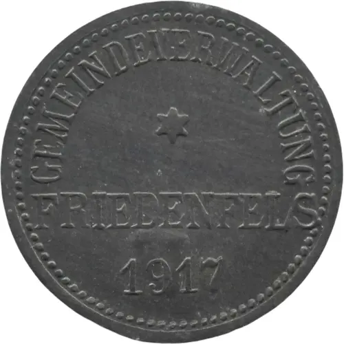 | Obverse lettering | GEMEINDEVERWALTUNG ✶ FRIEDENFELS 1917 |