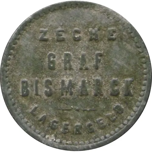 | Obverse lettering | ZECHE GRAF BISMARCK LAGERGELD |