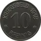| Reverse lettering | KRIEGSGELD 1918 10 ✶ PFENNIG ✶ |