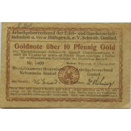 | Value | 10 Pfennig Gold (0.10) |