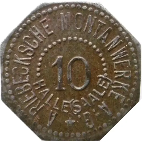 | Obverse lettering | A. RIEBECKSCHE MONTANWERKE A.-G. 10 HALLE (SAALE) ★ |
