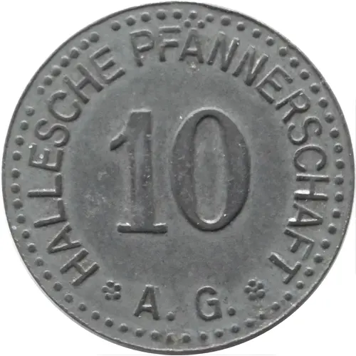 | Obverse lettering | HALLESCHE PFÄNNERSCHAFT 10 ✿ A.G. ✿ |