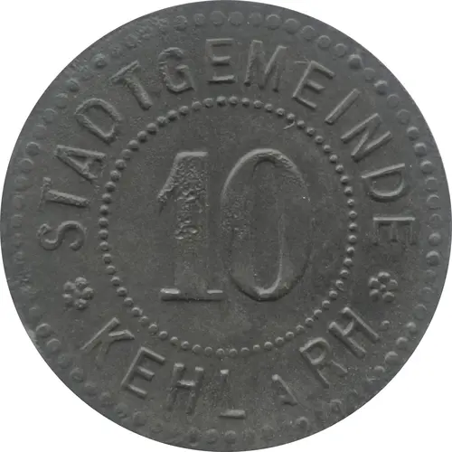 | Obverse lettering | STADTGEMEINDE 10 ✿ KEHL i.RH ✿ |