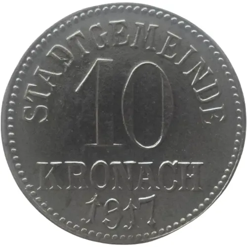 | Obverse lettering | STADTGEMEINDE 10 KRONACH 1917 |