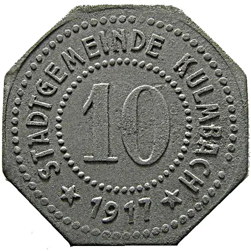 | Obverse lettering | STADTGEMEINDE KULMBACH 10 ★ 1917 ★ |