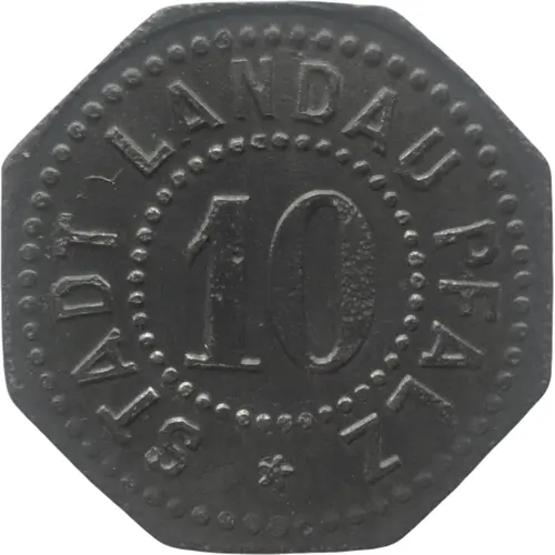 | Obverse lettering | STADT LANDAU PFALZ 10 ★ |