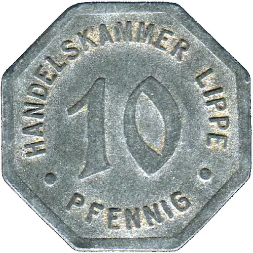 HANDELSKAMMER LIPPE 10 ● PFENNIG ● (Translation: CHAMBER OF COMMERCE LIPPE) |