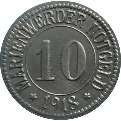 | Obverse lettering | MARIENWERDER NOTGELD 10 ★ 1918 ★ |