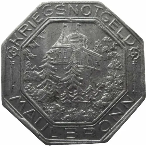 | Chữ khắc mặt trước | KRIEGSNOTGELD MAULBRONN |
