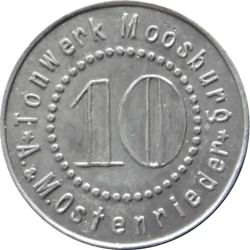 | Obverse lettering | Tonwerk Moosburg 10 ★ A. & M. Ostenrieder ★ |