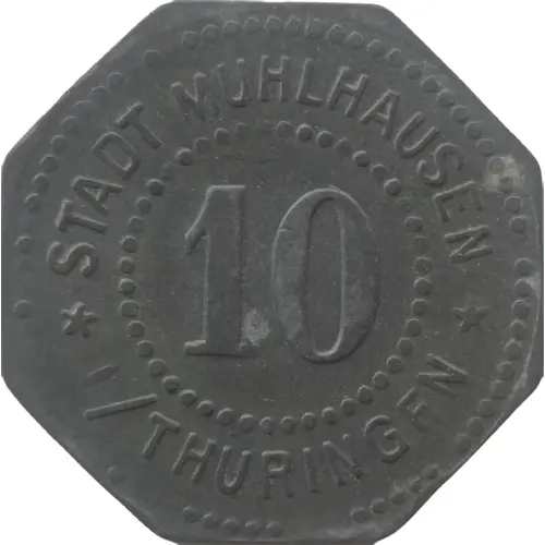 | Opschrift voorzijde | STADT MÜHLHAUSEN 10 ★ I / THÜRINGEN ★ |