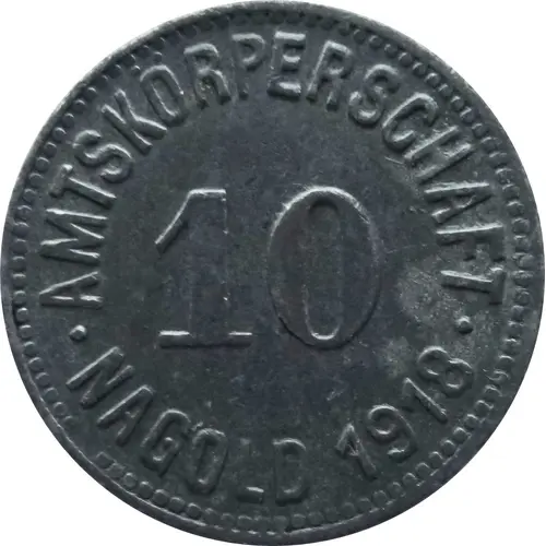 | Obverse lettering | AMTSKÖRPERSCHAFT 10 ● NAGOLD 1918 ● |