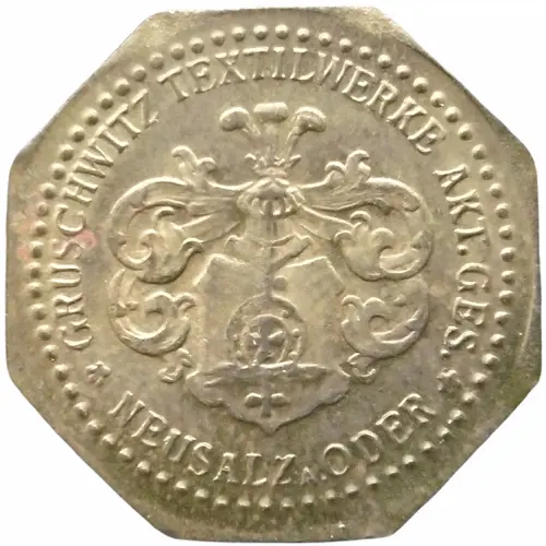 | Opschrift voorzijde | GRUSCHWITZ TEXTILWERKE AKT. GES. ✿ NEUSALZ a. ODER ✿ |