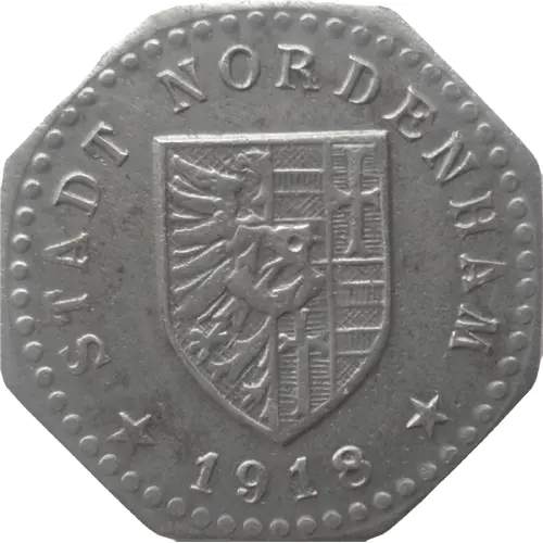| Obverse lettering | STADT NORDENHAM ★ 1918 ★ |