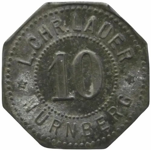 | Obverse lettering | L. CHR. LAUER 10 ★ NÜRNBERG ★ |