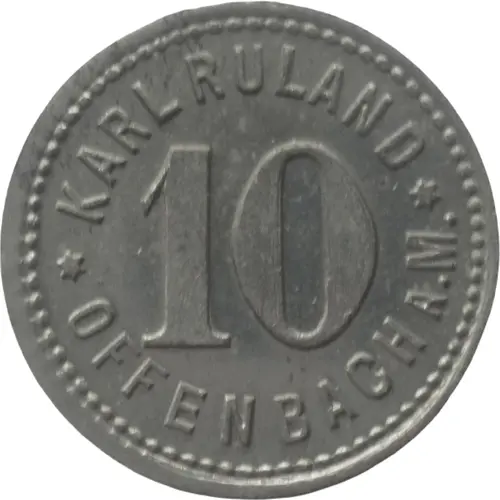 | Obverse lettering | KARL RULAND 10 ✶ OFFENBACH A.M. ✶ |