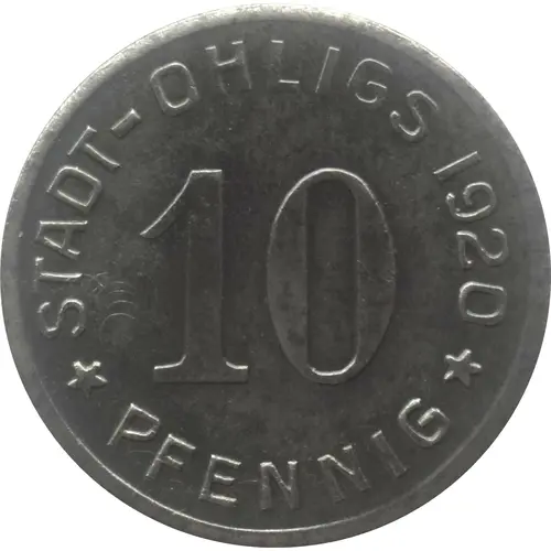 | Obverse lettering | STADT-OHLIGS 1920 10 ★ PFENNIG ★ |