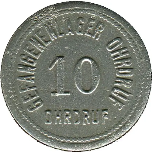 | Obverse lettering | GEFANGENENLAGER OHRDRUF 10 OHRDRUF |